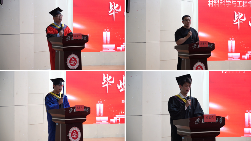 研究生周健、本科生丁艺分别代表全体毕业生向为学子成长倾注心血的教师们致以诚挚谢意,并祈愿母校如松柏常青,桃李盈枝遍寰宇。教师代表周聪博士向毕业生送上祝福,勉励毕业生永葆赤子之心,以星海为途践理想,静候诸君在逐梦征程中传佳音、书华章。