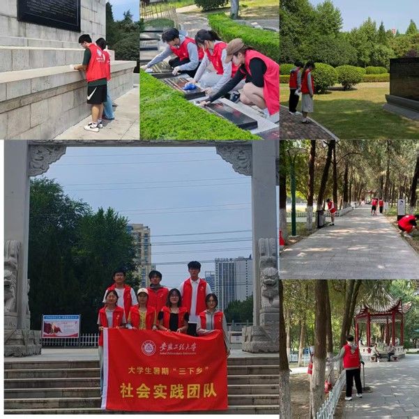 7月17日,晨曦微露时,团队便扎根宿州市雪枫公园,开启了充实的一天。上午,队员们手持扫帚、抹布分散开来,仔细清扫广场落叶、擦拭纪念墓碑上的尘埃,仿佛与那段峥嵘岁月轻轻触碰。同时我们在打扫中,遇几位环卫工人忙于保洁工作,因天气炎热,遂主动送上饮用水,为他们解暑降温。清扫完毕,大家列队站在彭雪枫将军纪念碑前,神情肃穆地献上朵朵洁白的小白花,鞠躬致敬的瞬间,风声里似有历史的回响。