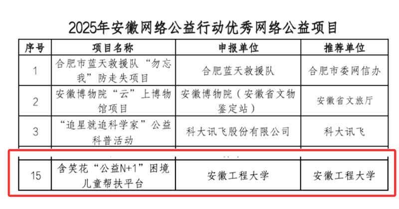本次评选活动由省委网信办主办、安徽省互联网行业联合会承办,旨在发挥互联网赋能公益发展、为民惠民的重要作用,营造网络公益全民参与、全网行动的良好氛围。活动受到全省各界广泛关注和积极响应,省内各类公益主体踊跃参与。