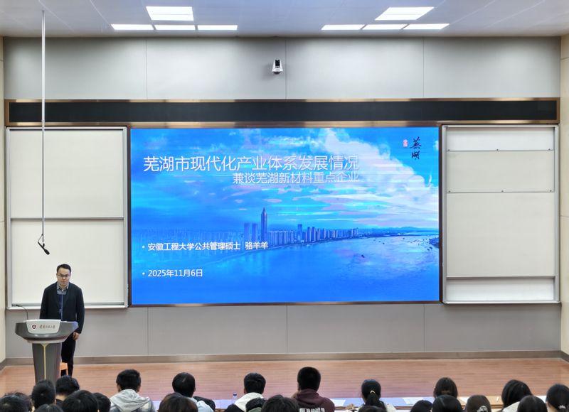 作为材料领域学子的重点关注方向,骆羊羊在分享中还针对性解读了新材料产业的发展机遇。他结合国家“十五五”规划建议的顶层设计,深入剖析了《2025年芜湖市新材料产业“双招双引”和产业培育工作要点》的政策导向,并通过典型企业案例介绍,直观展现了芜湖新材料产业的创新实力与发展潜力,为学子们搭建起产业前沿与专业学习的连接桥梁。