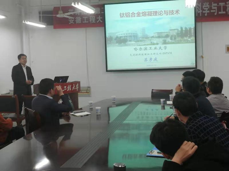 11月10日下午,哈尔滨工业大学苏彦庆教授,应材料学院邀请来 亚洲色图 作关于“钛铝合金熔凝理论与技术”的学术报告,学院教师和研究生参加了此次报告,报告由王刚副院长主持。