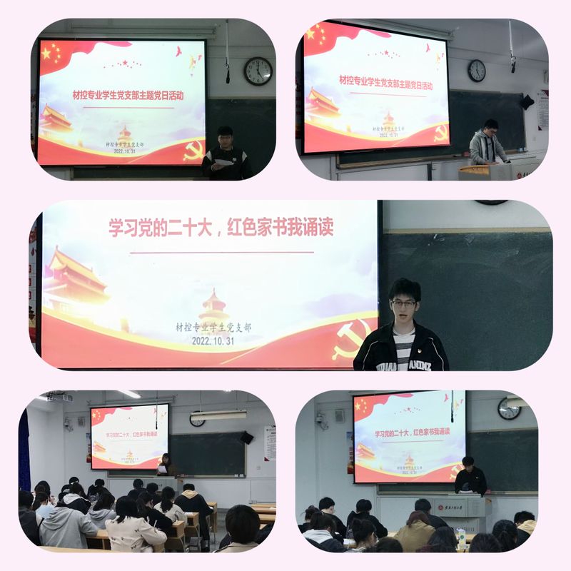 据悉,材控专业学生党支部积极学习党的二十大精神,开展了结对帮扶学困生、我学党的二十大有感等系列主题党日活动,积极发挥党员先锋模范带头作用。