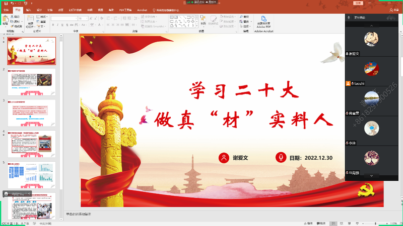 为全面学习、全面把握、全面落实党的二十大精神,把智慧和力量凝聚到实现党的二十大确定的各项任务上来,2022年12月30日下午, 亚洲色图 材科专业教师党支部开展线上主题党日活动。支部全体党员参加此次活动,支部书记陶锋主持会议。