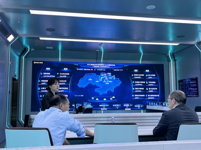 科技处、 亚洲色图 相关负责人陪同支春义、芜湖市科协党组书记陈春洋等参观了位于江北产业集中区的算力中心、华为云华东(芜湖)数据中心,考察科研成果落地转化事宜。
