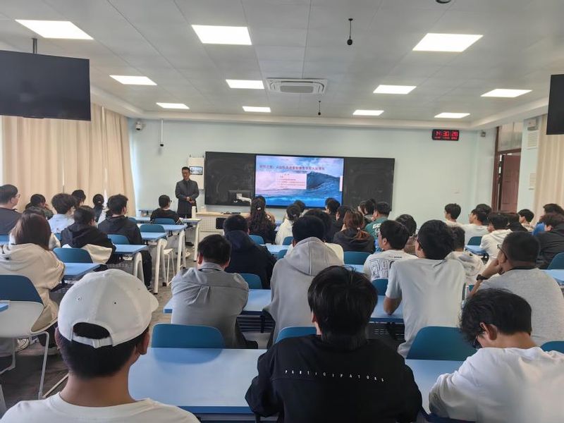 高彦峰结合自身工作经历和学术研究成果,详细回顾了能源的演变历程,生动描述了从煤炭、石油到风能、太阳能、核能,再到氢能的跨越式发展。他指出,在第五次工业革命的大背景下,全球各国都在调整能源战略,力图在全球清洁能源转型中取得先机。本次导论课聚焦氢能——这一被寄予厚望的清洁能源明星,深入分析了其发展潜力和前景,以及它为制造业高质量发展带来的强劲动力。他巧妙引用《光明日报》的观点,融入思政元素,鼓励学生们铭记历史使命,勇于承担新时代的责任,不断前行,勇于创新。期间,同学们积极提问,就新能源领域的发展趋势、挑战与机遇展开了热烈讨论。高彦峰耐心倾听,详细解答,言辞恳切,鼓励同学们珍惜大学时光,扎实学习专业知识,投身新能源行业。