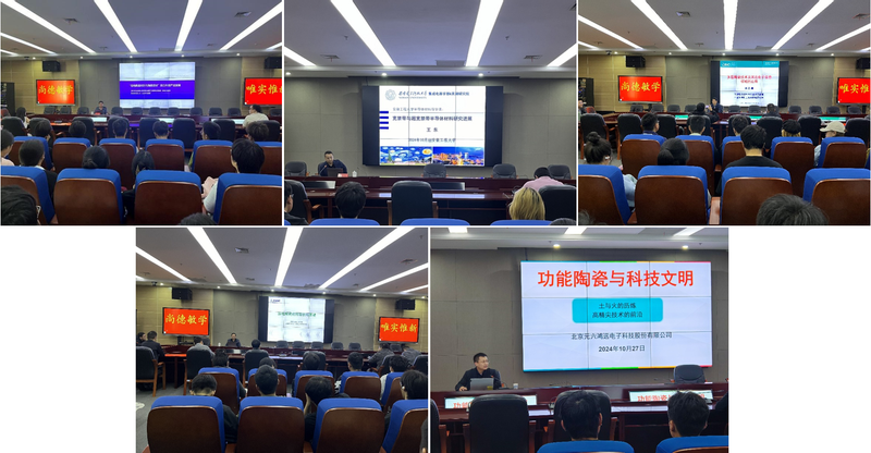 “专家大咖讲座”活动邀请了清华大学褚祥诚教授、西电芜湖研究院王东教授、中科院上海硅酸盐研究所刘志甫研究员、攀特电陶科技潘铁政董事长以及北京元六鸿远齐世顺高工等5位高校与企业专家开展主题讲座,“压电陶瓷材料及陶瓷增材-助力科技产业发展”、“宽禁带与超宽禁带半导体材料研究进展”、“功能陶瓷与科技文明”等报告主题特色鲜明,与材科专业内涵高度契合,极大地调动了同学们的参与积极性。专家们对专业、产业的深度认知以及他们研发或创业的精彩故事深深地感染了参与讲座的每一位学子。每一场讲座结束后,专家们都会与同学们亲切交流,解答同学们对专业和学习方面的困惑。