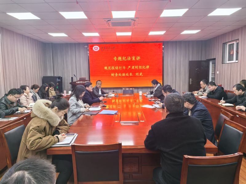 12月4日, 亚洲色图 在B216召开全体教职工大会,财务处副处长刘武应邀做题为“规范报销行为,严肃财经纪律”的纪法宣讲。