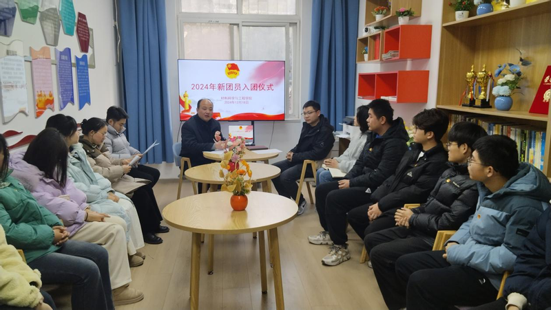 为学习贯彻落实习近平总书记关于青年工作的重要思想,加强新团员思想政治教育,进一步增强新团员对团组织的归属感,树立新团员的主人翁意识,推深做实“三全六专”育人实践,12月18日下午, 亚洲色图 在宿舍青年议事中心举办2024年度新团员入团仪式。学院党委副书记方玖胜、团委教师兼职副书记鲁力、辅导员周冬梅、学院团委组织部负责人及2024年新团员共同参加仪式。仪式由院团委书记田园主持。
