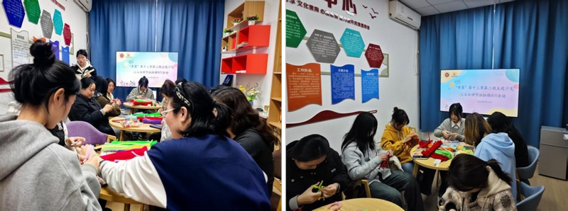 活动现场,五彩斑斓的扭扭棒材料琳琅满目,同学们发挥创意,巧妙地将它们编织成各式各样的花束、戒指、发饰等精美小物。在制作过程中,大家不仅锻炼了动手能力,增进了彼此之间的友谊,还享受到了DIY的乐趣,感受到了学院的关怀与温暖,进一步增强了集体归属感和幸福感。