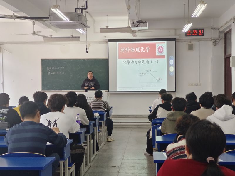 周聪老师本次讲课内容为《材料物理化学》中“化学动力学基础”的内容,上课对象为 亚洲色图 材料科学与工程专业2023级学生。他首先回顾了化学热力学的内容,并阐明热力学与动力学的关系,建立起热力学与动力学的知识衔接。随后讲解了反应速率及速率方程、基元反应和质量作用定律两节内容。周聪老师在教学过程中深入浅出,运用生活化教学策略,通过“人体内蔗糖和氧气反应”“甲烷燃烧”“碘钟反应”等多个实际案例,有效激发学生的学习兴趣,使复杂理论变得生动易懂,并采用“问题链”教学法,通过递进式提出问题,引导学生逐步构建知识体系。