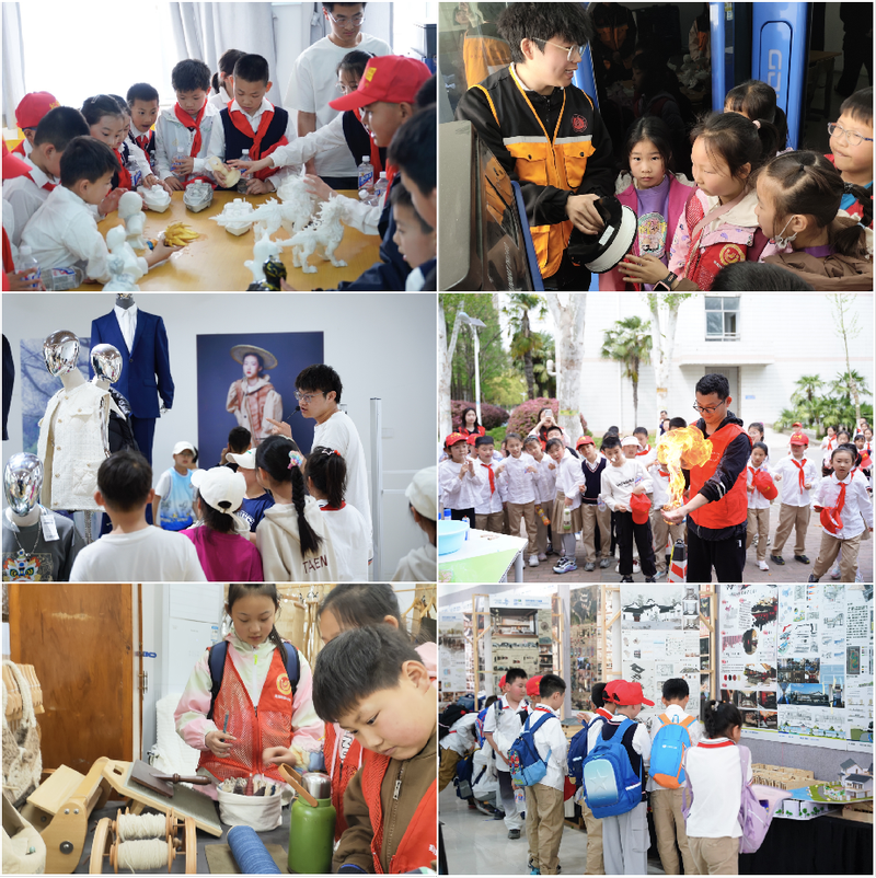 小学生们首先参观了学校图书馆广场的借阅区和自习区,深切领略了图书馆丰富藏书的深厚底蕴。随后,他们走进 亚洲色图 ,现场观摩3D打印技术及增材制造研究院的前沿成果;在化学与环境工程学院实验室,孩子们不仅目睹了前沿科研成果,还观看了大学生志愿者带来的“火焰掌”“人造雪”“火山喷发”等趣味实验;在纺织服装学院,小学生们了解了芜湖浆染工艺的历史、发展及制作流程,近距离接触非遗浆染实验室的各类作品,并亲身体验学院展厅的纺织“黑科技”;在设计学院展厅,孩子们被2024届优秀毕业作品所吸引,栩栩如生的产品模型激发了他们对设计创新的浓厚兴趣,在心中悄然种下创意的种子。