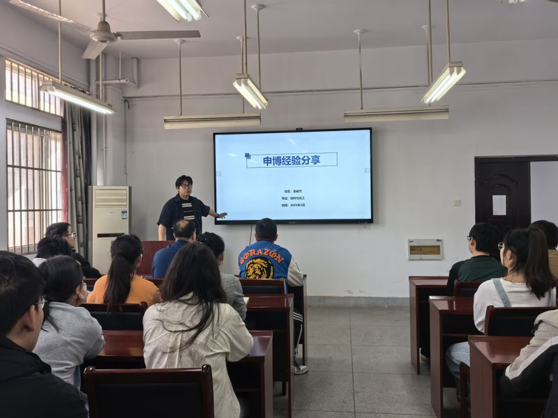 学院25届毕业生,分别已考取南京航空航天大学、江苏科技大学博士研究生吴峻杰和王立鹏两位同学结合自身申博经验,表示要尽早明确读博意愿、确定研究方向、完善个人简历、针对性地撰写博士研究计划书,强调要从自我定位、学术方向定位、规划好自己的申博路线,具体就在申博过程中如何正确筛选学校、联系博导以及与博导进行交流时需要注意的事项进行了分享交流。