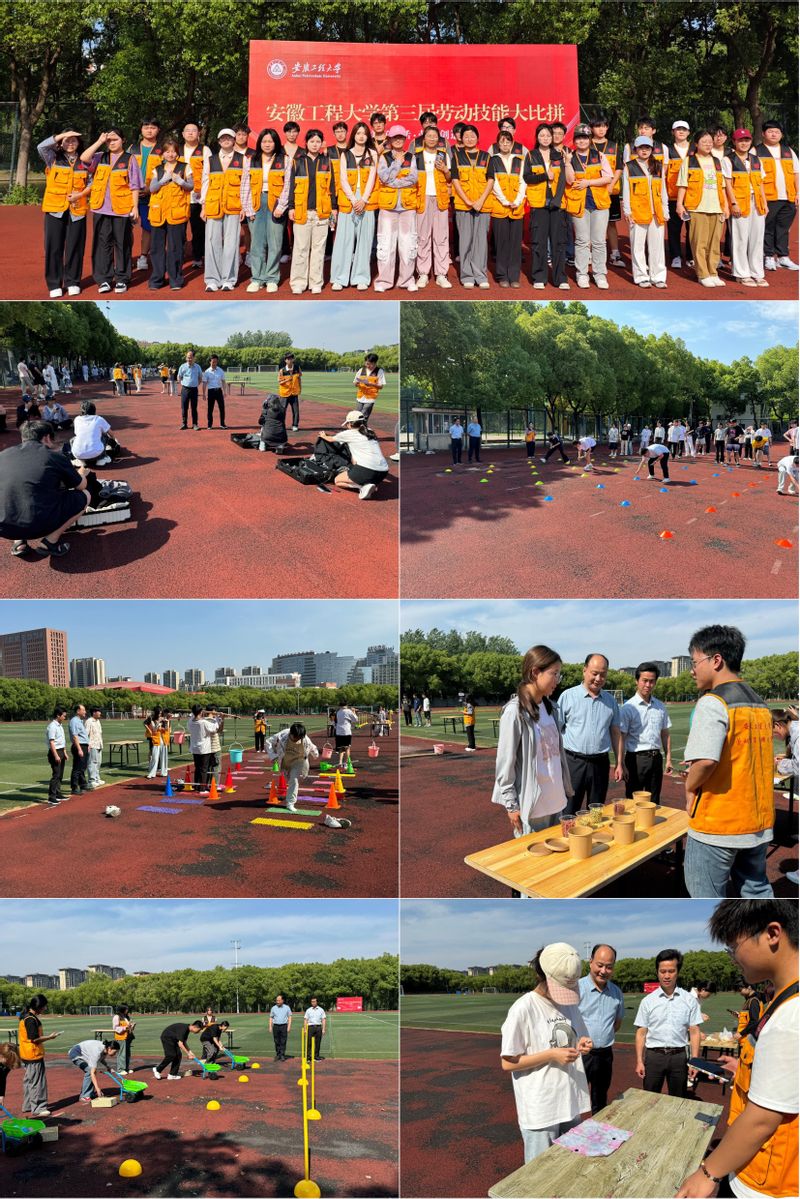 为积极响应安徽省第5个全省“学生劳动教育宣传周”,深入贯彻落实学校“三全六专”育人实践要求,在全校范围内营造“勤起来”的良好氛围,教育引导广大学生牢固树立正确的劳动观念,提高劳动的能力和意识,深刻领会“幸福是奋斗出来的”时代内涵与意义,5月14日,由教务处、学生处、团委主办, 亚洲色图 承办的第三届劳动技能大比拼活动在第二田径场举行。来自全校各学院的15支队伍,学校劳动教育先锋班参加活动,教务处副处长胡孝忠和 亚洲色图 党委副书记方玖胜到场指导。