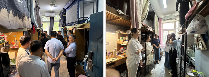 为扎实推进毕业生安全离校工作,6月6日晚, 亚洲色图 党政领导、系部负责人、辅导员深入毕业生宿舍开展走访慰问活动,为即将踏上人生新征程的学子送上温暖祝福。